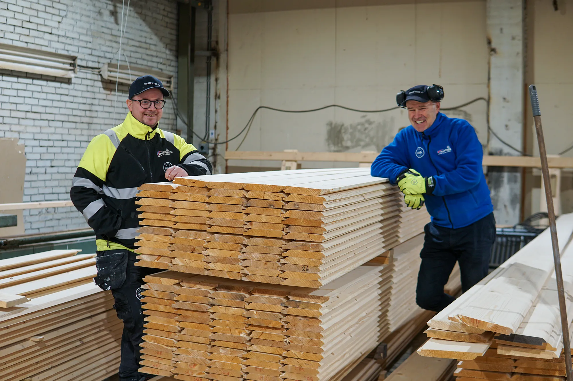 Hos Laftekledning skjer alt i lokalene våre i Verdal. Her sager, profilerer og overflatebehandler vi kledningen selv.